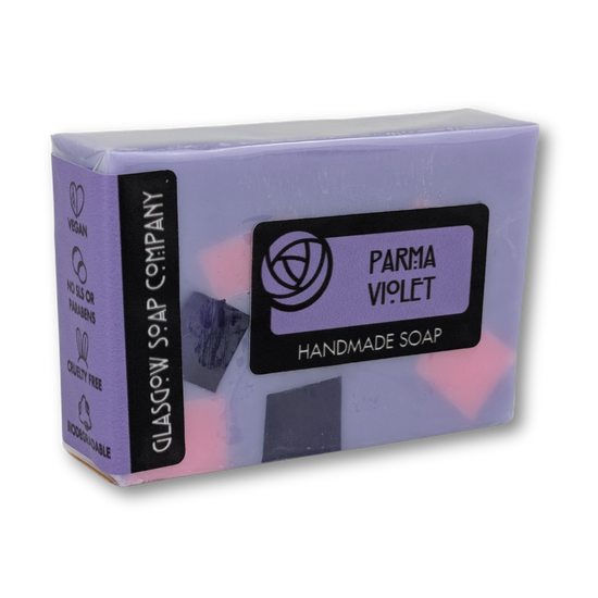 Our parma violet soap slice has a classic parma violet fragrance, enhanced with fragrant heliotrope, rose, lily, iris and a hint of spice and is sure to invoke some childhood memories.